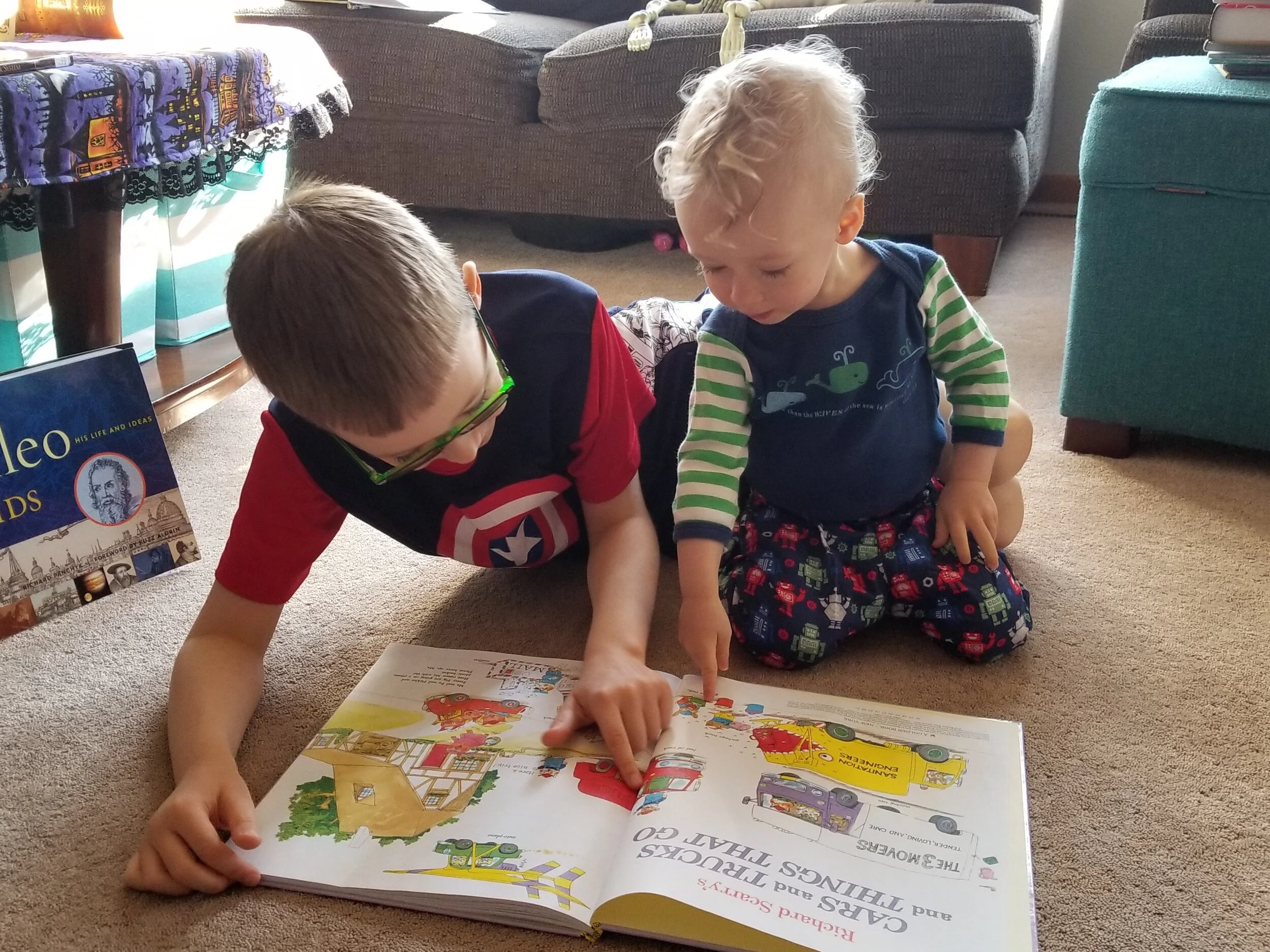 Did every day go well? Nope. But that’s just part of life. Some days we got a lot done, and some days we all ended up a bit frustrated. As with any family, we needed to adapt to changing circumstances along the way. In January, our daring youngest child fell as he was being playfully chased through our living room by his older brother. We didn’t think it was that bad of a fall, and his leg only had a small bump; his continued agonizing pain indicated that something was really wrong with his leg. It was broken. The poor little guy had his entire leg in a cast until May. We adapted to that, too. It turned out that children with broken legs who can’t run around and climb all over furniture can sit really nicely and learn how to read. (Eventually they learn how to climb even with a fully-casted leg and they start to make up for lost time, making their parents very nervous in the process!)